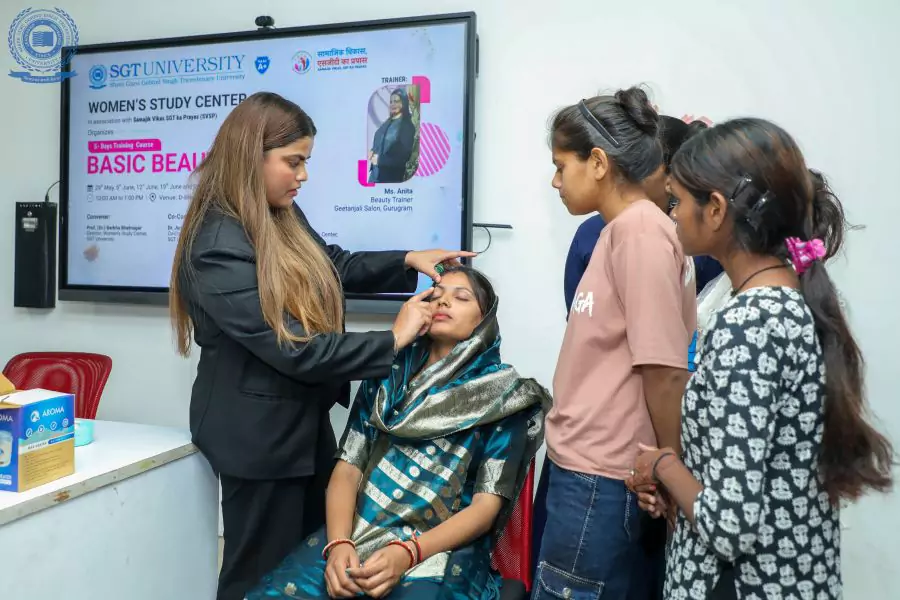 The sessions, led by professional beauty trainer Ms. Anita from Geetanjali Salon, Gurugram, aim to equip participants with foundational beauty and grooming skills, promoting self-employment and confidence. Held at SGT University from 29th May to 26th June 2025, this initiative reflects the University's commitment to community empowerment and skill development.
