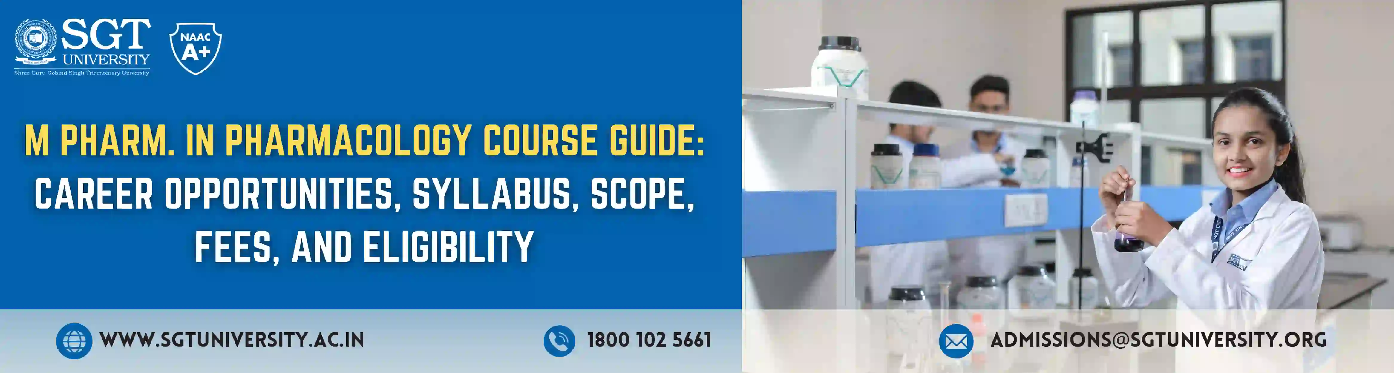 SGT University, Gurugram, a NAAC A+ accredited institute, offers one of the most demanded programs, MPharm in Pharmacology. The university focuses on developing drugs and maintaining their records, making it an ideal choice for students interested in the medical and pharmaceutical field.