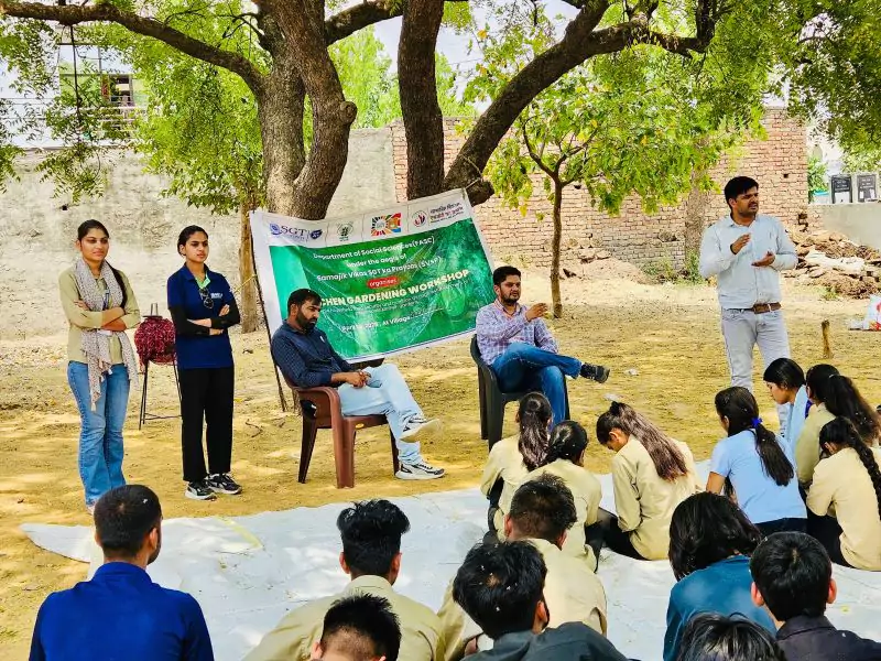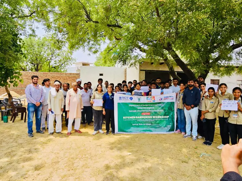 To promote household food security and better nutrition, the Department of Social Sciences, FASC, SGT University, organized a Farmer Workshop on Kitchen Gardening on 1st May 2025 at Birhera Village under the banner of Samajik Vikas SGT ka Prayaas (SVSP).
