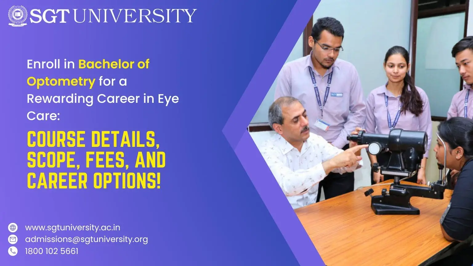 The optometry degree course at SGT University, Gurgaon, provides students with the knowledge and skills necessary to provide comprehensive eye care services. SGT is one of the best university in Delhi NCR and Haryana for optometry.