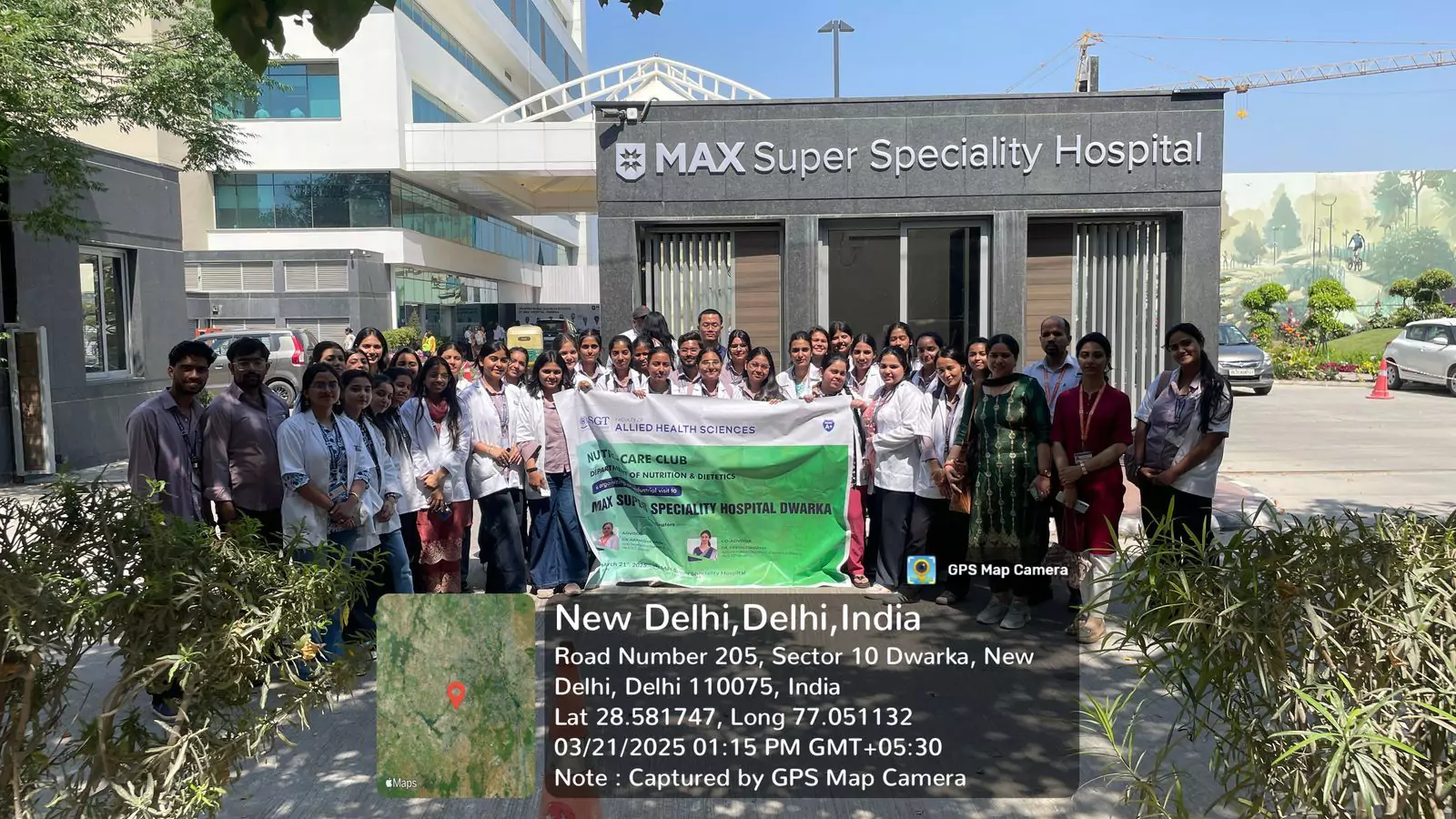 Nutri-Care Club Nutrition & Dietetics (SGT University) students had an enriching educational and industrial visit to the Dietetics Department at Max Super Specialty Hospital, Dwarka on 21st march 2025, gaining invaluable insights into hospital-based dietetics and patient care. The visit began with an in-depth exploration of the hospital kitchen, menu planning, and dietary counselling sections, where students observed how therapeutic diets are prepared and customized for different medical conditions.