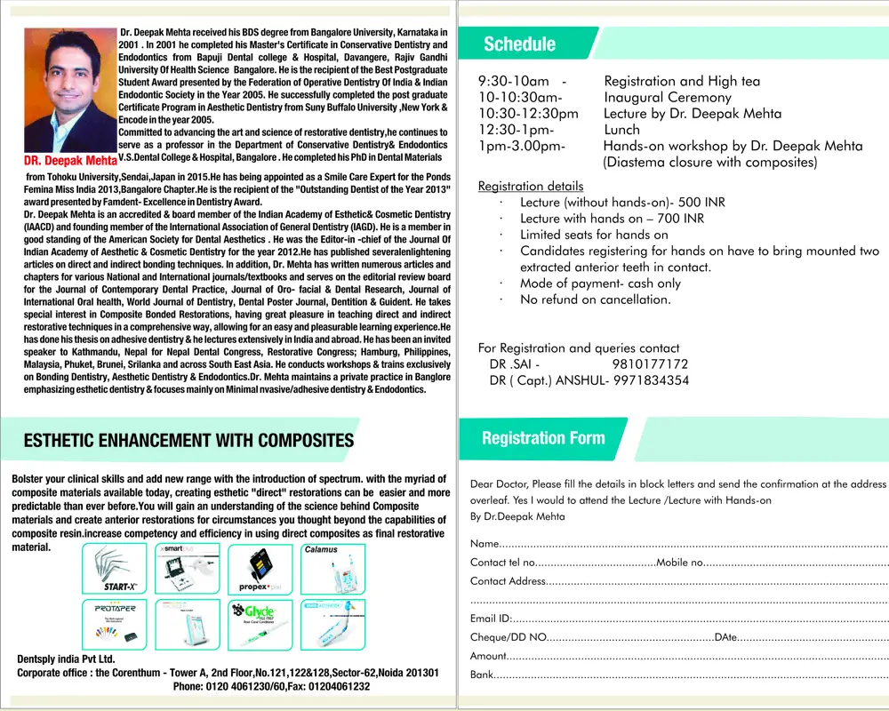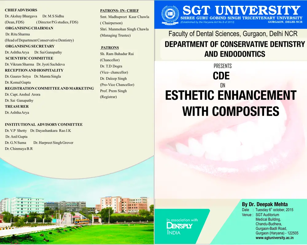 Webinar conducted on âAestheticsâ by DR . RATANDEEP PATIL on 3rd July 2015 CDE Program to be conducted on 6th October 2015 on â ESTHETIC ENHANCEMENT WITH COMPOSITESâ followed by hands on course