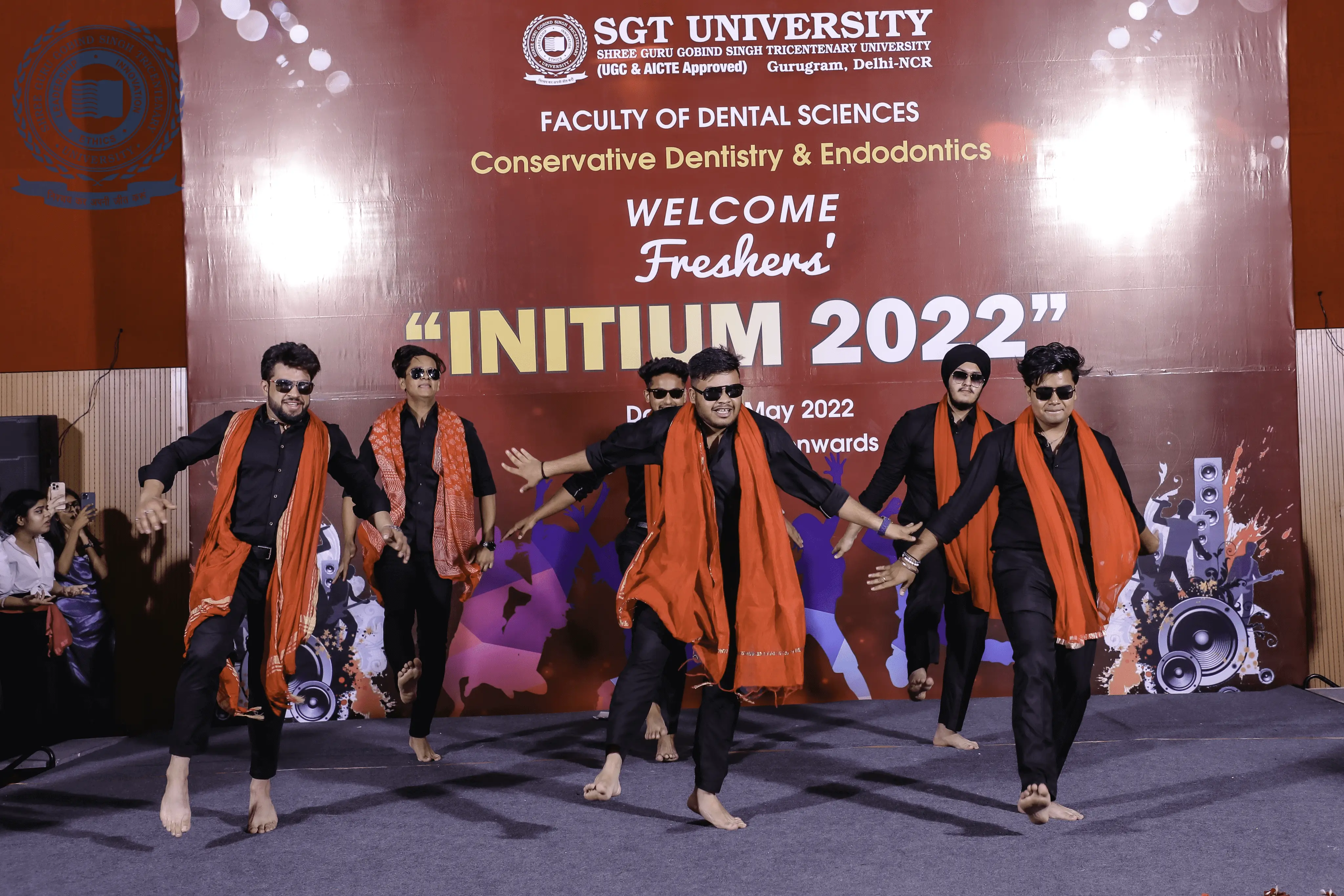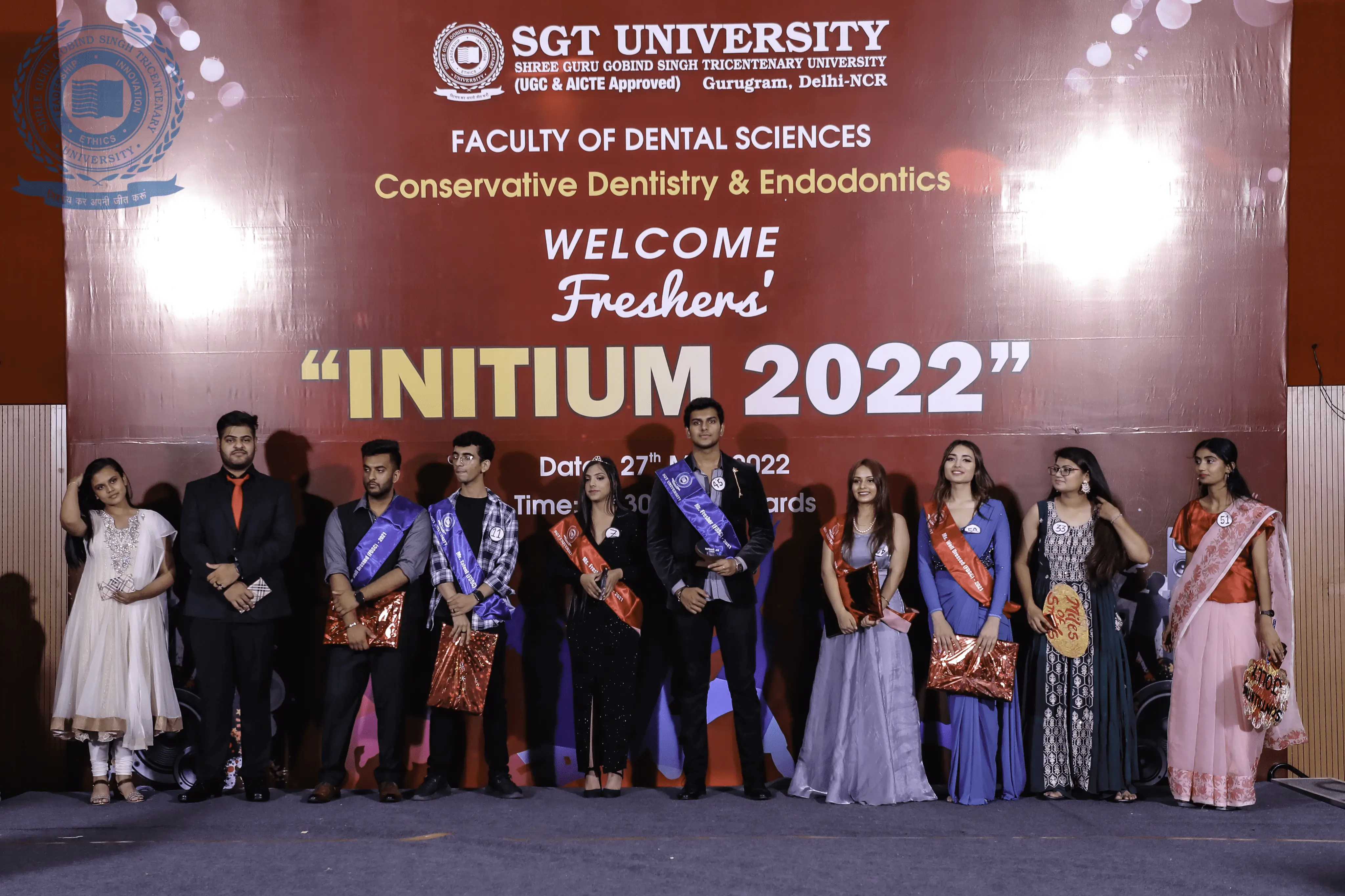 The students of Second year BDS organized a Freshersâ Party âINITIUM 2022â to welcome the Batch of 2021, under the guidance of Dept. of Conservative & Endodontics. The purpose of the Freshers Party was to make every new student feel connected as an integral part of the SGT family and be ready to take on the challenges of the year ahead. The event was packed with tremendous performances like Bhangra, Fashion show, Lazy Dance, bollywood dance, skit and many more. All the students introduced themselves and were also given the chance to showcase their talents. All awards were given by the jury to the respective students, with the trophies to all, including sash and gifts.