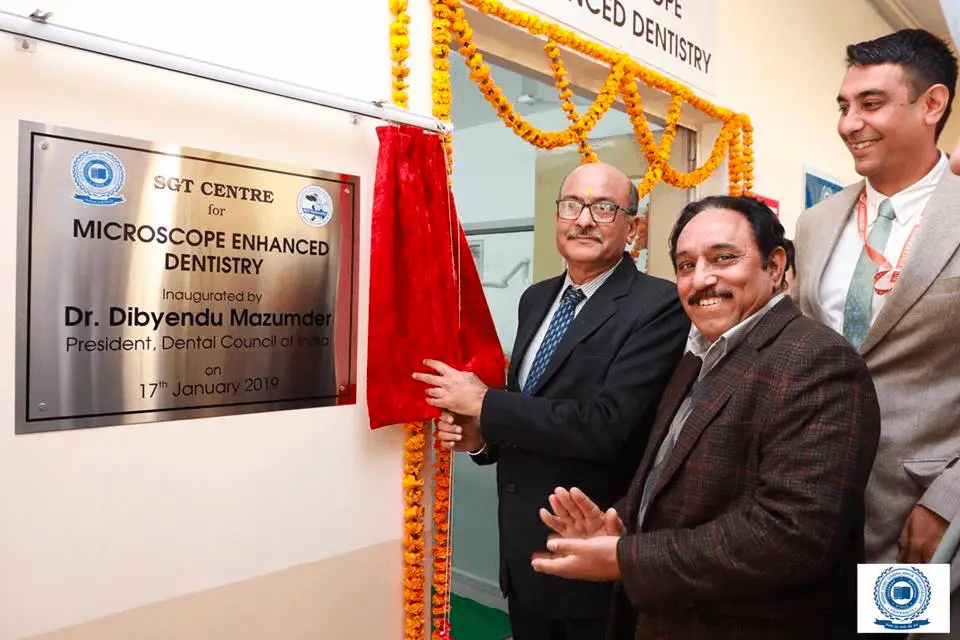 SGT University was gratified by the benign presence of President of Dental Council of India âHonorable Dr. Dibyendu Mazumder. Dr. Mazumder inaugurated two of SGT's prominent centers namely âCentre for Microscopic Enhanced Dentistry' housing several clinical dental operating microscopes and Centre for 'Maxillofacial Imaging' housing CBCT imaging system. In his speech he praised Dr. Mandeep S. Greawl for his diligence and sincerity he put for the excellence of Faculty of Dental Sciences. In the presence of honorable chairman of SGT university, the management committee and other eminent faculty members, it was an interesting session in which Shree Mazumder appreciated SGTâs Faculty of dental sciences, its infrastructure and hoped that it will embark on the path of further development. He applauded the pioneering and egalitarian job done by the SGT's Faculty of Dental Sciences in bringing dental care to rural India . All together it was an eventful and enlightening assemblage of best minds in the field of Dental sciences present in our country.