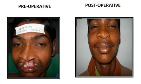 FOR CORRECTION OF THIS EXTENDED SLIDING ADVANCEMENT GENIOPLASTY AND ILIAC CREST GRAFTING ON LEFT SIDE WAS DONE UNDER GENERAL ANESTHESIA.