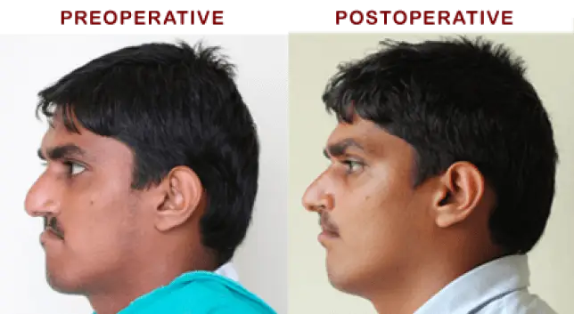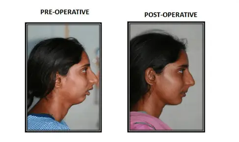 MAXILLARY ADVANCEMENT WITH DOWNGRAFTING ALONG WITH BILATERAL SAGGITAL SPLIT OSTEOTOMY WAS DONE UNDER GENERAL ANESTHESIA. MAXILLARY ADVANCEMENT WAS DONE BY 6 MM ALONG WITH 6 MM OF MANDIBULAR SETBACK WAS DONE. BOTH MAXILLA AND MANDIBLE WERE FIXED INTO THE DESIRED POSTION USING 2 MM CHAMPY’S MINIPLATE. PRIMARY CLOSURE WAS DONE USING 3-0 VICRYL SUTURES.