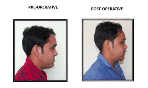 A PATIENT NAMED DINESH , 19 YEARS MALE REPORTED TO THE OUTPATIENT DEPARTMENT OF ORAL AND MAXILLOFACIAL SURGERY FACULTY OF DENTAL SCIENCES SGT UNIVERSITY WITH A CHIEF COMPLAINT OF FORWARD PLACED LOWER JAW SINCE LAST 10 YEARS. HISTORY OF PATIENT REVEALED TREATED BILATERAL CLEFT LIP AND PALATE ALONG WITH ALVEOLUS. EXTRAORAL EXAMINATION REVEALED A CONCAVE FACIAL PROFILE WITH RETRUDED MAXILLA, BILATERAL SCAR OF OPERATED CLEFT LIP. ON INTRAORAL EXAMINATION, A CLASS III MOLAR RELATION WAS SEEN WITH AN REVERSE OVERJET OF 8MM WITH MISSING 14 AND 24 CONGENITALLY. PATIENT IS UNDERGOING ORTHODONTIC TREATMENT SINCE 2 YEARS. PATIENT DIAGNOSED WITH HYPOPLASTIC MAXILLA.