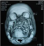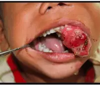 A 3 ½ YEAR OLD MALE CHILD REPORTED TO THE DEPARTMENT OF ORAL AND MAXILLOFACIAL SURGERY WITH THE CHIEF COMPLAINT OF SWELLING IN LEFT SIDE OF THE FACE IN MIDDLE 1/3RD REGION SINCE 2 1/2 YEARS. THE PARENTS OF THE CHILD GAVE A HISTORY OF HIM BEING APPARENTLY NORMAL TILL THE AGE OF 1 YEAR. FOLLOWING THIS, THE PARENTS NOTICED A SMALL PAINLESS SWELLING IN THE UPPER LEFT BACK REGION OF JAW. THEY APPLIED SOME LOCAL HERBAL MEDICATION ON THE SWELLING AND THERE WAS TEMPORARY RELIEF. HOWEVER, THE SWELLING CONTINUED TO INCREASE IN SIZE. THE CHILD WAS THEN REFERRED FROM MEWAD HOSPITAL TO THE DEPARTMENT OF ORAL AND MAXILLOFACIAL SURGERY, SGT DENTAL COLLEGE AND HOSPITAL FOR FURTHER MANAGEMENT.