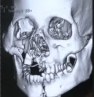 A 36 YEAR OLD MALE PATIENT REPORTED TO THE DEPARTMENT OF ORAL AND MAXILLOFACIAL SURGERY WITH THE CHIEF COMPLAINT OF INABILITY TO OPEN AND CLOSE THE MOUTH AND DIFFICULTY IN CHEWING FOOD. HE GAVE A HISTORY OF ROAD TRAFFIC ACCIDENT 2 MONTHS BACK IN WHICH HE HAD LOST HIS RIGHT SIDE MAXILLA AND WAS TREATED FOR FRACTURE OF RIGHT ZMC BY ORIF UNDER G.A IN A PRIVATE HOSPITAL.