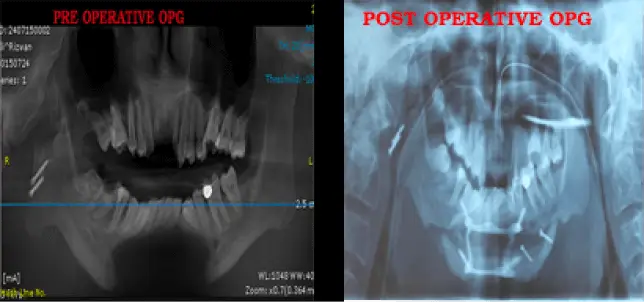 PATIENT WAS ALSO OPERATED AT THE SAME TIME FOR MALUNITED CONDYLE LEFT SIDE ALONG WITH THE FRACTURE OF THE LEFT PARASYMPHYSIS.