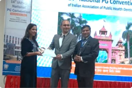 Indian Association of Public Health Dentistry (IAPHD) organized 14th National PG Convention at Faculty of Dental Sciences, Institute of Medical Sciences, Banaras Hindu University, Varanasi on 10th- 11th February 2023 in which faculty members from Department of Public Health Dentistry actively participated and presented their research work. Dr. Charu Khurana, Faculty Member won the Best Scientific Paper Presentation Award on the study entitled âAwareness, attitude and perception of compliance towards tobacco control legislations among the University students in Gurugram- An Exploratory Studyâ