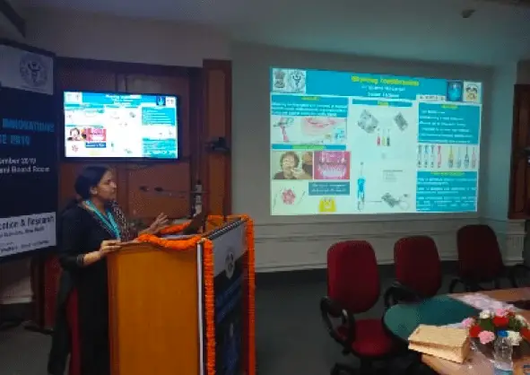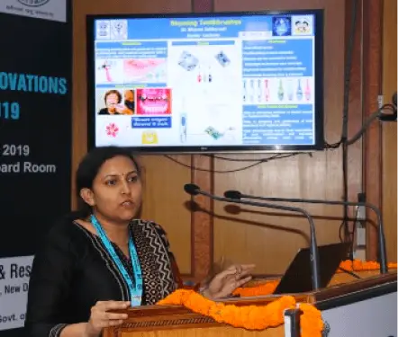 Dr. Bhavna Sabbarwal, Department of Public Health Dentistry, Faculty of Dental Sciences was shortlisted and awarded as top 15 Innovations at the First Oral Health Innovation Conference held at CDER, AIIMS, New Delhi on 16 September 2019. The total number of submissions for this national event were approx 200. Awardees were provided with certificates in presence of esteemed guests Shri Sudhir Kumar, Joint Secretary, Ministry of Health, Dr. Randeep Guleria, Director, AIIMS, New Delhi, Dr. OP Kharbanda Chief, CDER, Dr. Ashok Dhoble & Dr. L Swasticharan (CMO, MoHFW). Dr. Shourya Tandon as Co-author to the awarded innovation also attended the event.