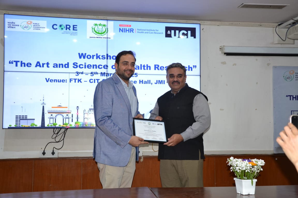 Invited as Resource Person/Guest Speaker on topic titled; Defining a Research Problem and Question; at the Workshop, organised by on The Art and Science of Health Research, organised at Jamia Millia Islamia, New Delhi, by the NIHR Global Health group on Oral Health, India Team