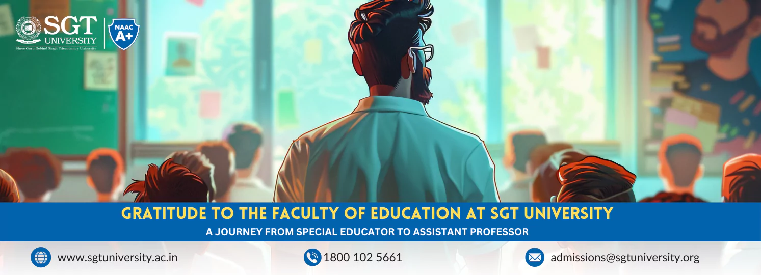 The Faculty of Education at SGT University stands out as the best university for education because all the programs are professional-oriented, skill-based, and competency-based, where theory and practical and field-wise activities are conducted. The strong faculty helped to construct transformative, holistic, and value-based immersive learning to pave the way for a productive career in special education.
