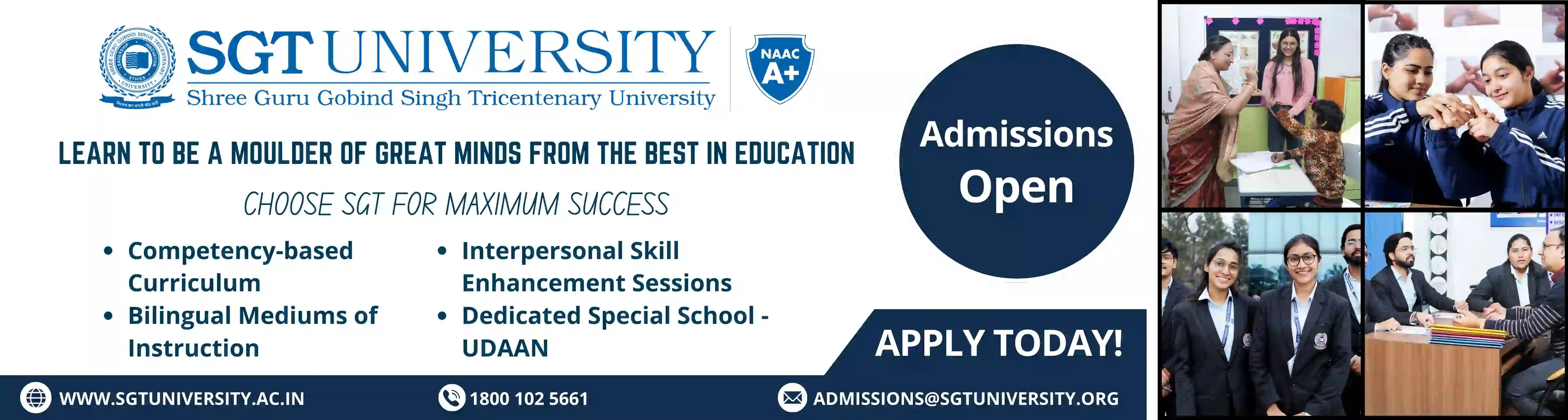 Few of the Best Education Colleges in Delhi NCR do provide an integrated BA B.Ed program, like SGT University, the best education college in Delhi NCR, which is offering an extremely unique four year integrated program inclusive of B.A. & B.Ed. in Special Education (Hearing Impairment-Preparatory Stage) that allows you to pursue after passing class 12 with a promising a unique teaching career.