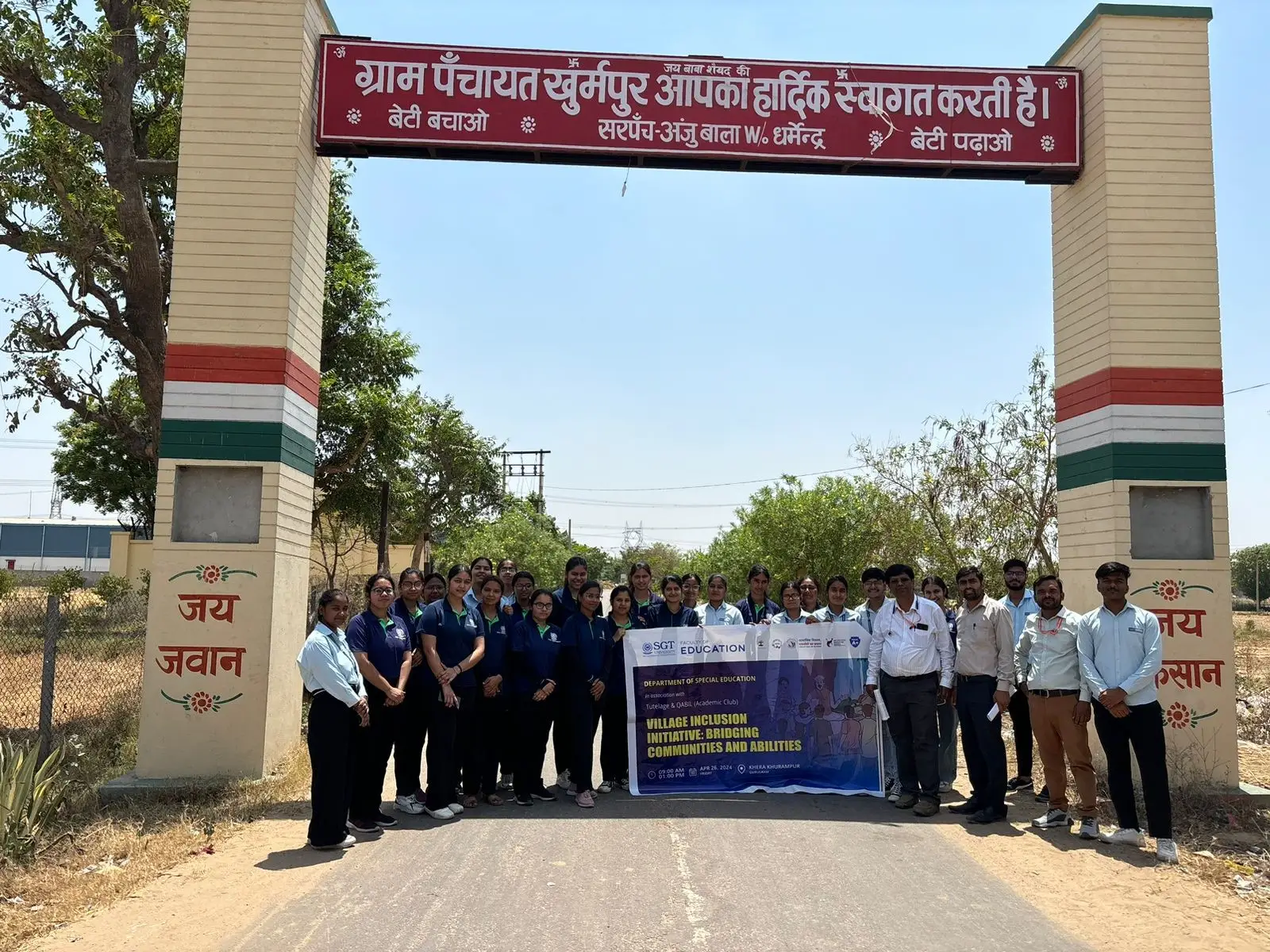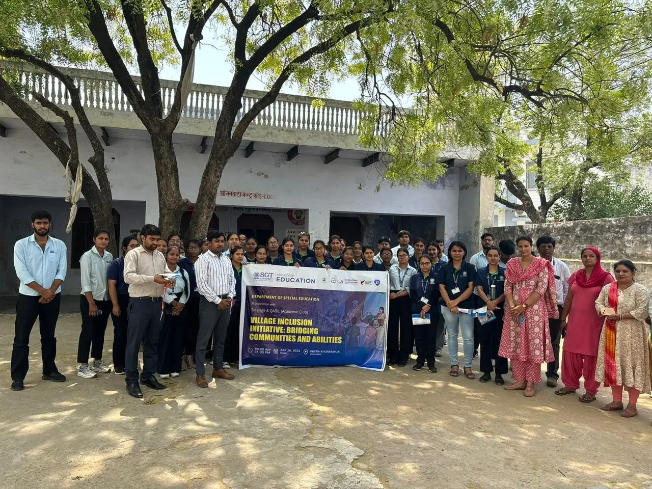 On 26th April 2024, Academic Association (Tutelage and Qabil) of Department of Special Education, Faculty of Education under the Chief Patronage of Prof.(Dr.)Madhavi Sharma, Dean of Faculty of Education in collaboration with Samajik Vikas SGT Ka Prayas and under the aegis of Institutions Innovation Council of SGT University, organized a community outreach program aimed at Village Inclusion by bridging communities and abilities, 20 children with special needs were identified through door to door survey and communicating with ICDS and Anganwadi worker of the village Kheda Khurampur, situated 15 Kms away from SGT University Campus. 43 students participated in this program. The program was coordinated by the able guidance of Mr. Parveen Kumar Jat, Asst. Prof. Dept of Special Education and Co-Coordinated by Mr. Awadhesh Kumar Yadav. Mr. Abhra Mukhopadhyay and Mr. Chandan Kumar Dubey, Asst. Prof. Department of Special Education as well IIC Faculty Coordinator helped the program towards the motive of IIC.
