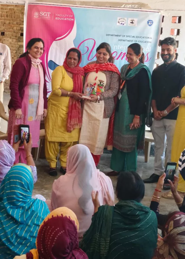 The Department of Special Education & Department of Education, Faculty of Education, SGT University, Gurugram (Haryana) visited Village nearby SGT University at Makrola. The chief guest, sarpanch Mr. Sumit and school principal Mrs. Sonia Jagga were honoured with saplings and mementos. then address the audience by honorable guest Mr. Sumit and Mrs. Sonia Jagga. After that event was carried out with ramp walk, all the Respected ladies participated in it, then played different games like; blow balloons, balanced race 500m , collecting articles, burst the balloon and lastly musical chair and we Selected 3 winners from each the games, refreshment was distributed among all, then the prize distribution ceremony began . The honourable Principal madam has given prizes to our participant’s and in the end we all took a group photo.