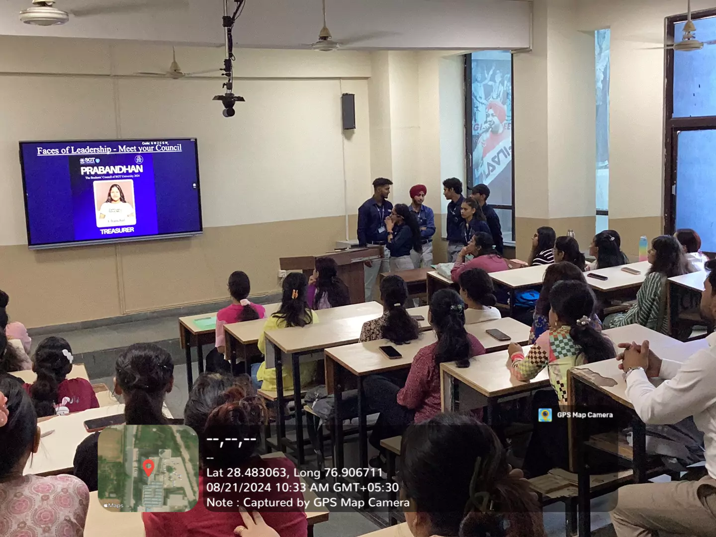 At 9.30 A.M, as our new students B.Ed.(Gen.), B.Ed.(Spl. Edu.) and D.Ed. (Spl. Edu.) gathered in our lecture theatre 223 2nd floor , their enthusiasm and excitement was well received by flowers and returned a warm welcome by our Dean , Prof. (Dr.) Madhavi Sharma and other Faculty members. The programme began with the welcome address by the Dean. This was followed by an introduction to the students. The introduction session was a fascinating session where all the students shared their thoughts on what made them choose the profession for teaching and opt for the path for teacher training and teacher education. After that a welcome note given by Prof. (Dr.) Madhavi Sharma (Dean, Faculty of Education) addressed the students about the teaching skills, future scopes in teacher education and their career.Thereafter teaching faculty interacted with the students and shared their view about education and his own experiences. After that a welcome address was given by Vice Chancellor Dr. Madan Mohan Chaturvedi. In the next session, Ms. Priyanka gives an overview of the vision and mission of SGT University, Faculty of Education. Before the lunch DSW (Prabhandan Club) members interact with new students.