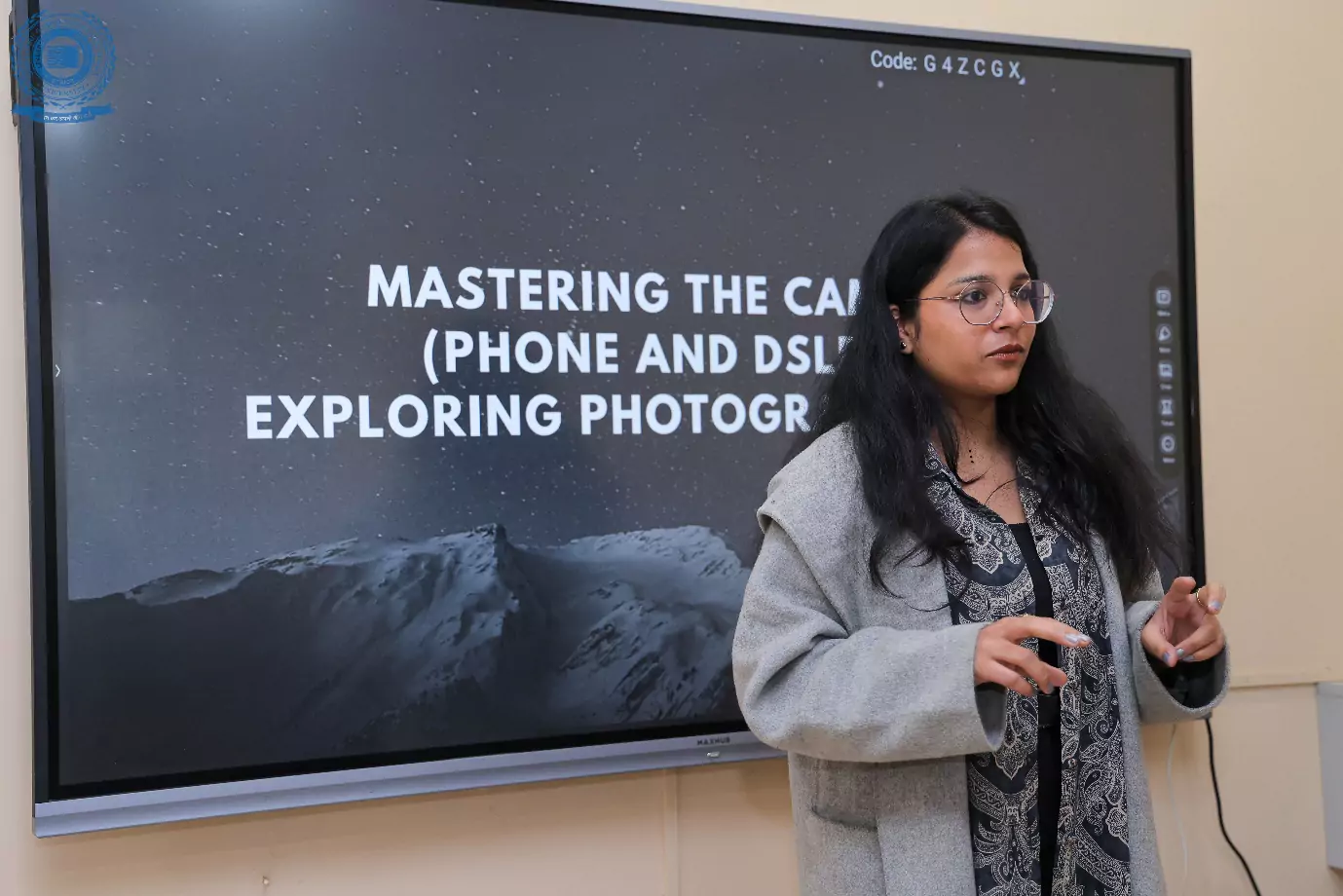 The workshop was designed to give students a real-world experience, blending technical learning with hands-on practice. The first day focused on understanding the fundamentals of photography, covering the Exposure Triangle (ISO, Aperture, Shutter Speed) and the art of composition. "A good photo isn’t just about clicking the shutter, it’s about understanding light, angles, and storytelling," Ms. Bansal explained.