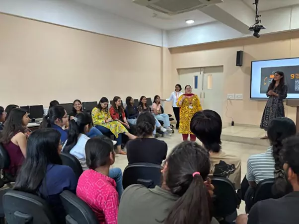 A key focus of the session was body language, where students discovered how gestures, posture, and eye contact influence their message. The trainers demonstrated how subtle non-verbal cues can significantly impact first impressions during interviews and presentations.