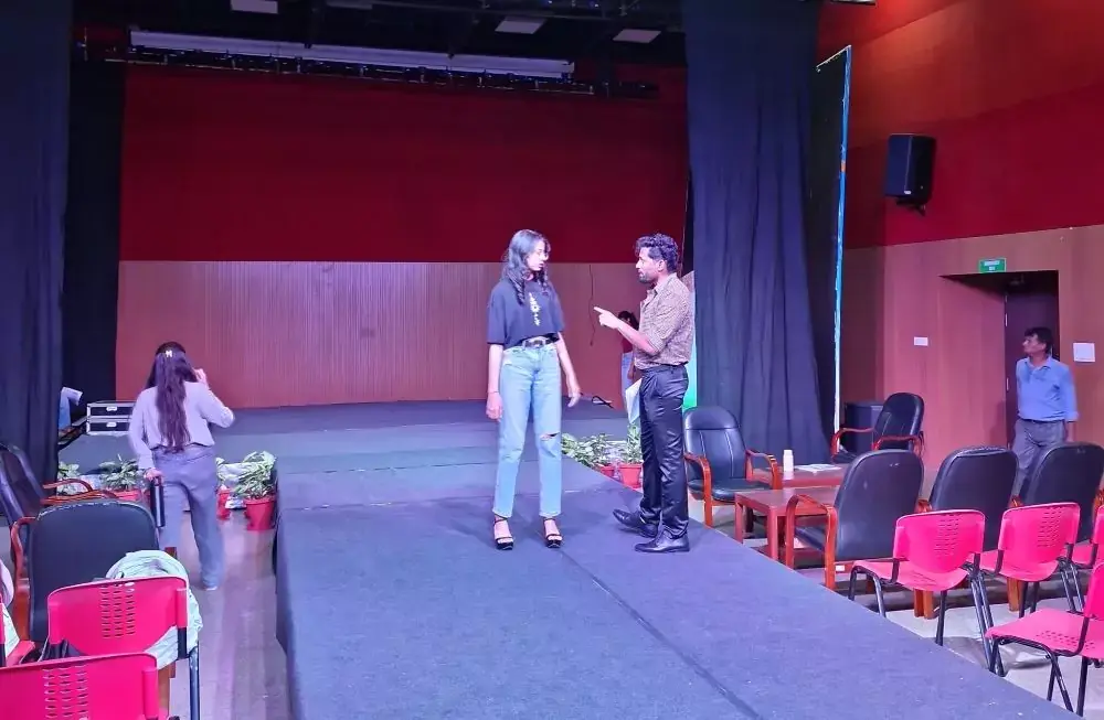 Over the course of two days, Mr. Mithapalli covered various aspects of fashion choreography, including runway techniques, model coordination, and stage presentation. The workshop began with an introduction to the essentials of fashion show planning, such as music selection, lighting, and set design, followed by practical sessions where students learned to coordinate model walks and synchronize movements with thematic presentations.