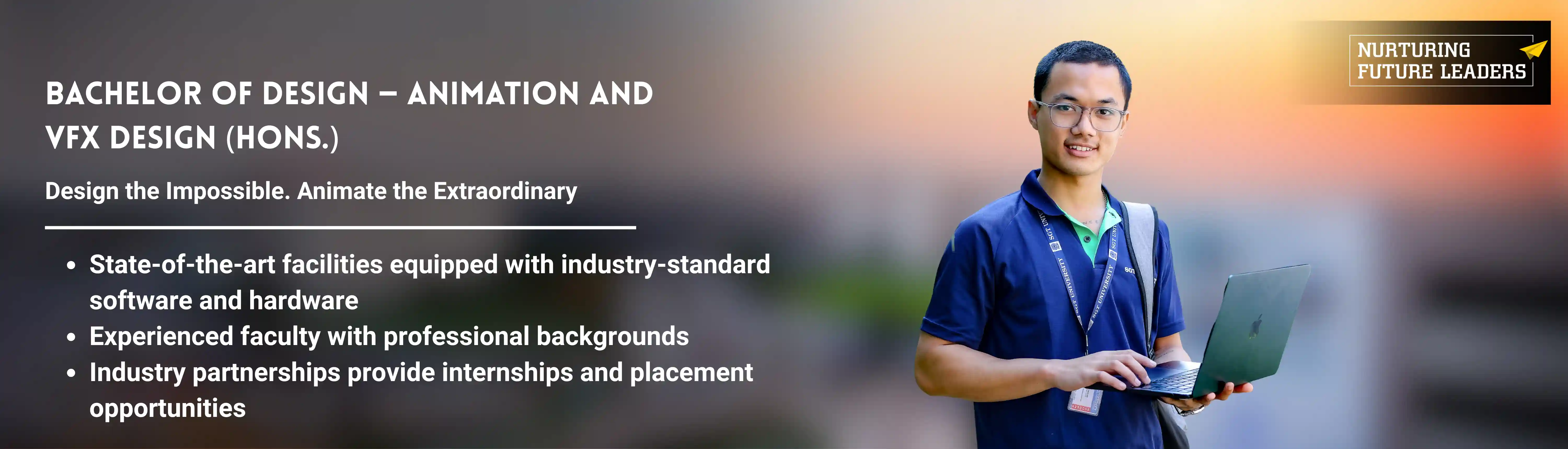 The Bachelor of Design in Animation and VFX Design at SGT University is a comprehensive four-year undergraduate program designed to cultivate both creative talents and technical skills in the rapidly evolving fields of animation and visual effects. The degree focuses on teaching students the technical and creative skills necessary to produce high-quality animated films, television shows, video games, and visual effects for film and television.