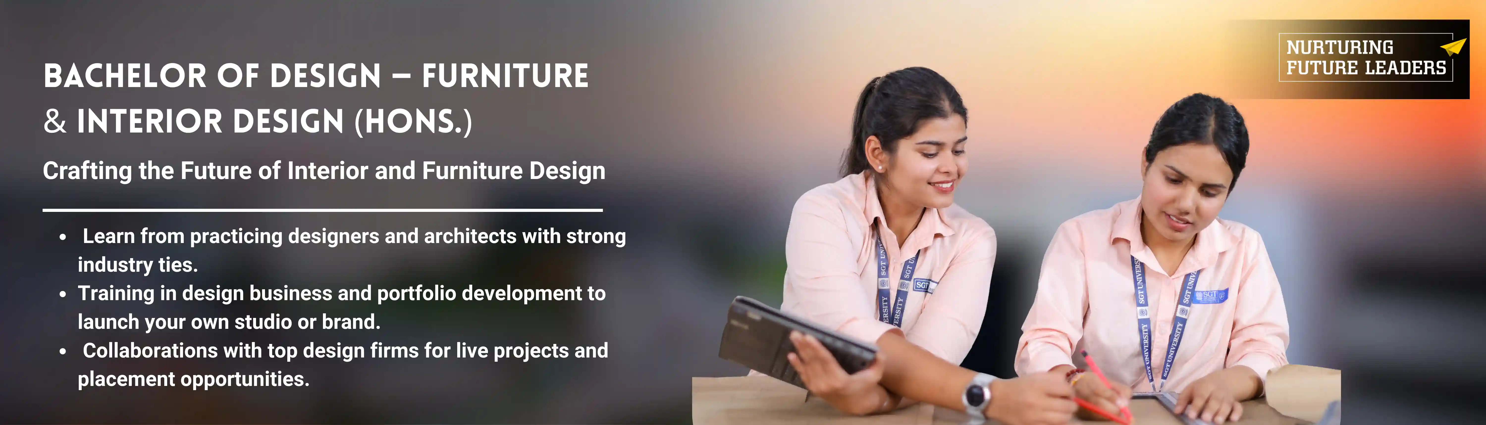 SGT University offers a dynamic four-year Bachelor of Design in Furniture and Interior Design program that sparks creativity and sharpens technical skills. This course immerses students in industry knowledge and prepares them to excel in the evolving furniture and interior design fields