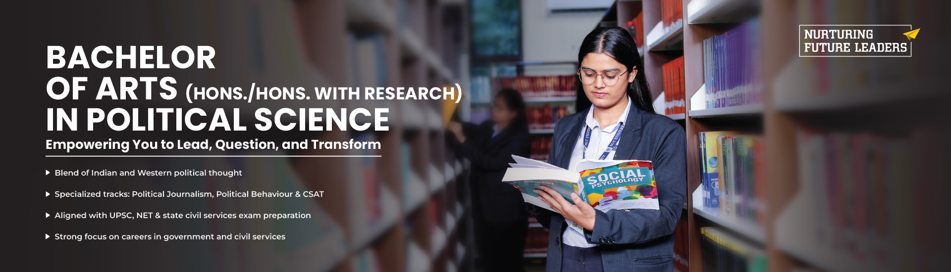The B.A. (Hons. with Research) in Political Science syllabus encompasses a diverse range of subjects within the field of political science, along with skill development and interdisciplinary learning, including:
