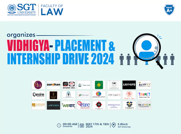 The Internship & Placement Cell at the Faculty of Law, SGT University, Gurugram, serves as a vital bridge between academic learning and professional practice. Committed to enhancing the employability and professional development of law students, the Cell facilitates meaningful internship experiences and career opportunities in diverse legal environments. Through strategic partnerships with law firms, corporate legal departments, judiciary, NGOs, and governmental organizations, the Cell ensures that students receive exposure to various facets of legal practice while developing crucial practical skills.