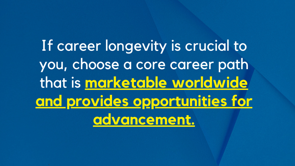 Choose a core career path that is employable worldwide and gives development prospects. You may maximize your opportunity to enhance your wage while minimizing the chance of your job sector becoming outdated in this manner.