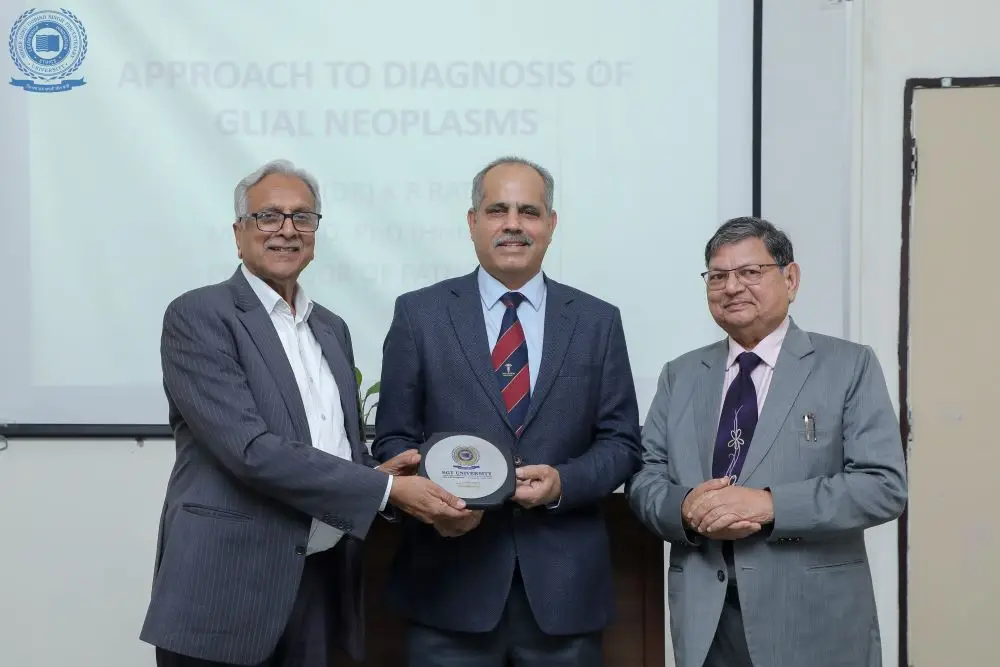A Guest lecture cum workshop on Approach to glial neoplasms was organized by the Department of Pathology, FMHS, SGT University on Friday, 08 Dec 23, 0930 h onwards at C Block, attended by all the faculty members and PG students of the Department of Pathology. The Guest speaker was by Brig (Dr) KR Rathi, Professor of Pathology, Al Falah Medical College, Faridabad. The inauguration of the event was graced by Dr Sham Singla.
