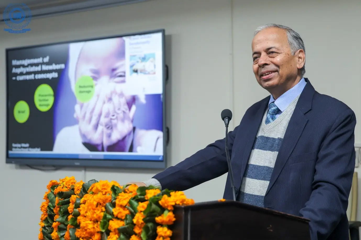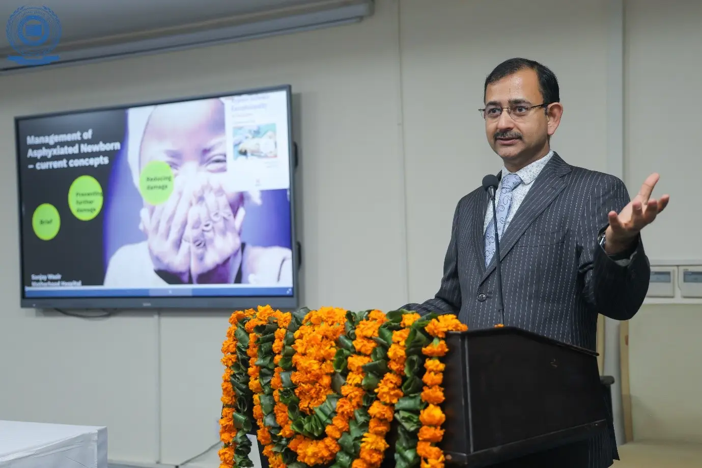 Dr Sanjay Wazir delivered a talk on the topic ‘Management of asphyxiated newborn.’ He discussed definition, staging, pathophysiology and management of an asphyxiated newborn. He discussed early intervention strategies and latest modalities of management including ‘Therapeutic hypothermia’ which we are eager to start in our NICU. After all, our aim in SGT hospital is to improve patient care and upgrade the department academically.