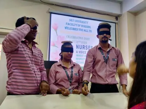 The event was inaugurated with lightning the lamp by prof.(Dr.) Sunil Kumar Dular , Dean along with all the HODs of Faculty of Nursing, SGT University. A floral tribute was paid to Sister Florence Nitingale by all the faculty members of Nursing. The event was organized for students as well as for Faculties of Nursing college. The First phase of event was celebrated with all nursing students in their respective classrooms with Various fun activities carried out by the respective class coordinator and Faculty members along with gift distribution to the winners.
