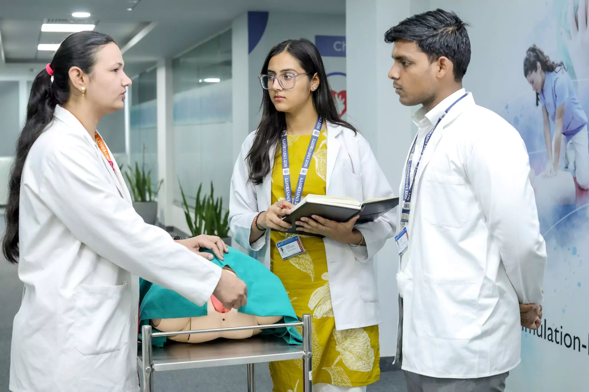 A strong focus is placed on simulation-based learning, with birthing mannequins, pelvic