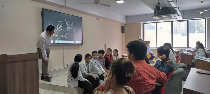 School of Physiotherapy in association of Ortho care & Rehab is organising a 2 day hands on workshop on “REFLEX RELEASE TECHNIQUES – An innovative way to treat musculoskeletal problems” dated 28/02/23 to 1/03/23. We have amongst us Dr. Abhishek Sharma who is a Sr. Physiotherapist and Pain consultant Director, Rehabilitation Advanced Neuro Rehabilitation Centre Dehradun, Uttarakhand. The event was officially inaugurated around 10:00 am in the presence of Prof Dr. Rakesh Kumar Sharma, Pro chancellor, SGT UNIVERSITY, Dr. Pooja Anand (Dean and Professor, FPHY) and all the faculty members of FPHY. The students are very enthusiastic towards learning the new approach. In today’s session different patient approach techniques were taught which included reflex rules, assessment of musculoskeletal functions, reflex release techniques along with practical demonstration of all the approaches.